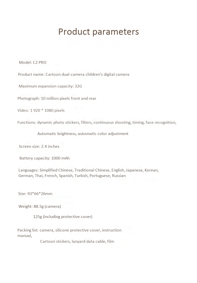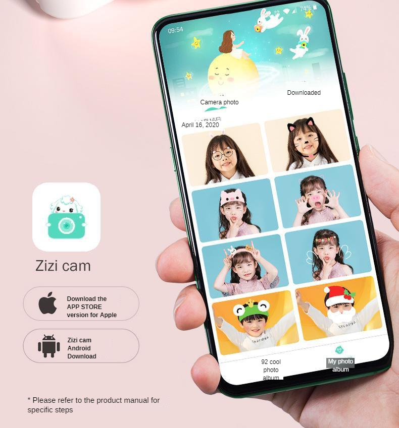 [newly added music WiFi / APP transmission function, high-definition 1000W pixel dual camera, 1080p video recording, face recognition focusing, continuous shooting, timing, filter, and real-time updating of big head stickers]