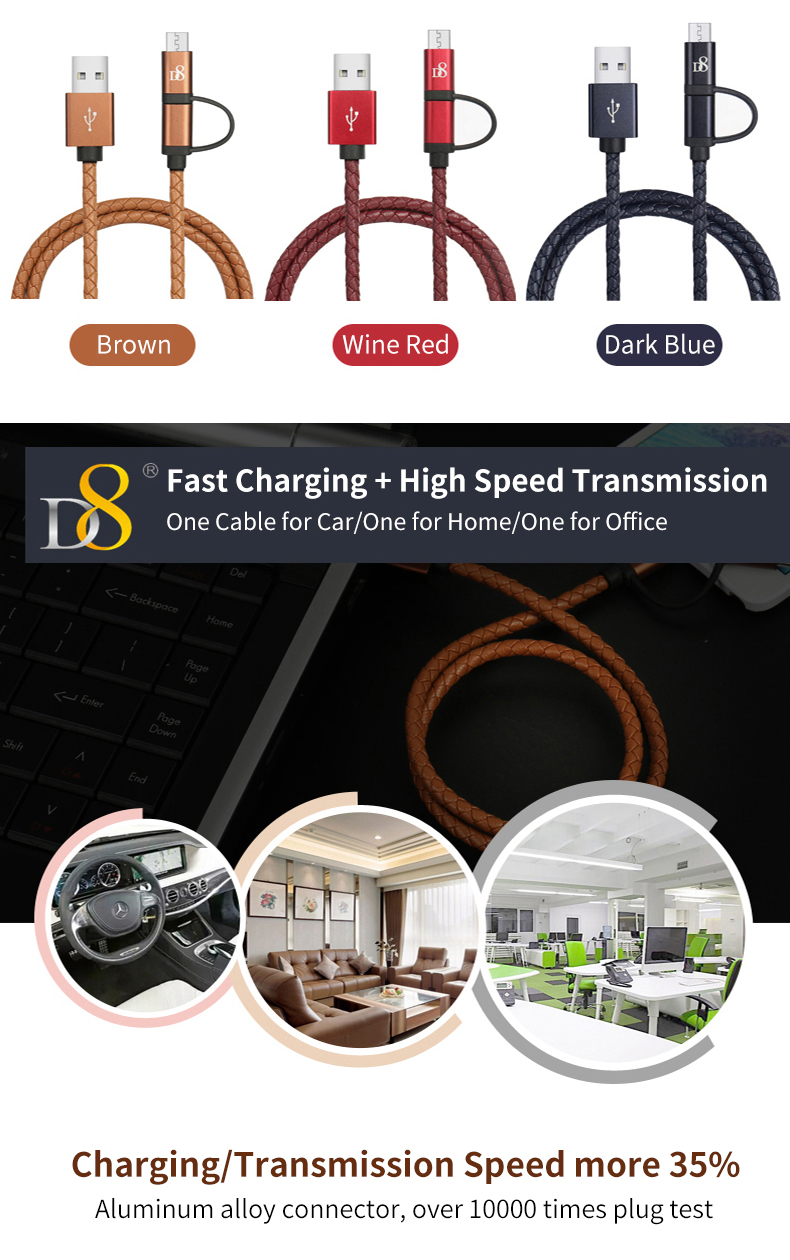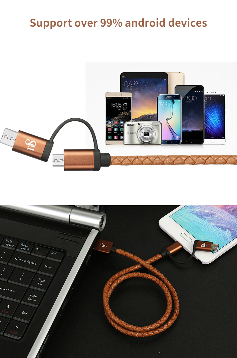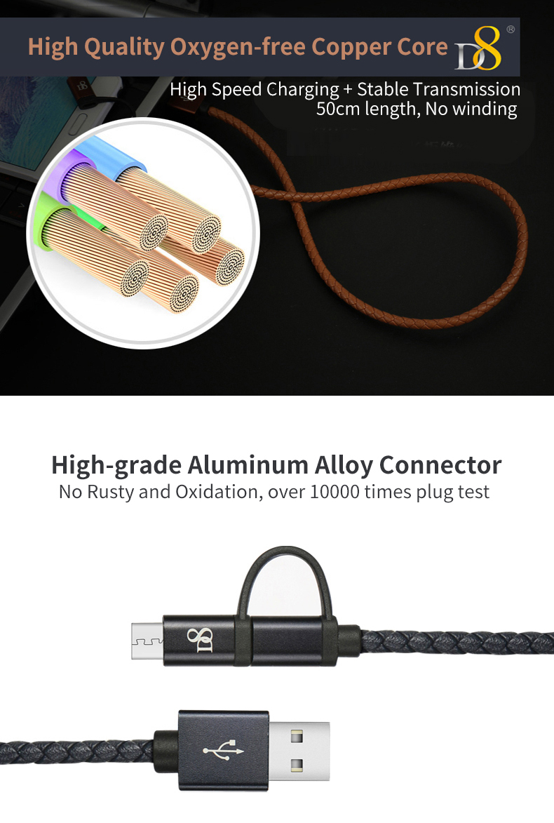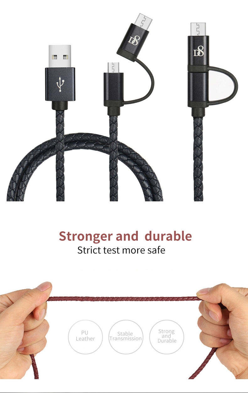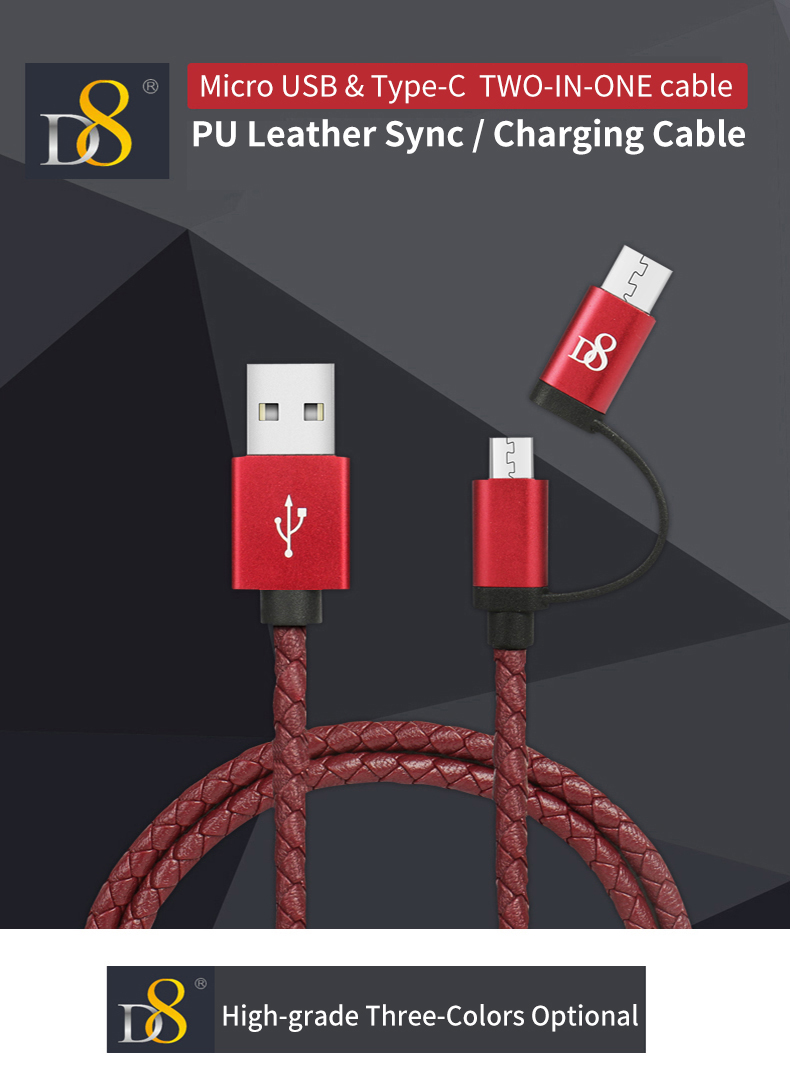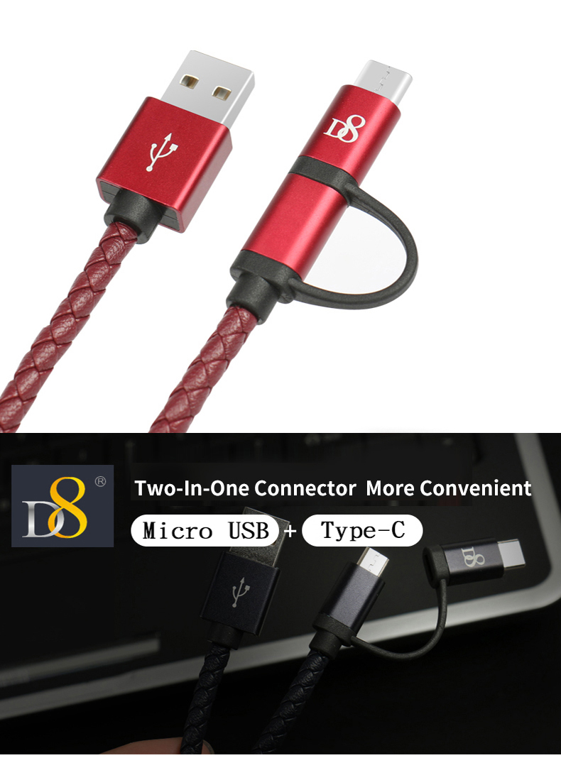 D8 2 in 1 Type-C Micro USB Data Cable for Android Huawei Mobile Phone High Quality Fast Charging