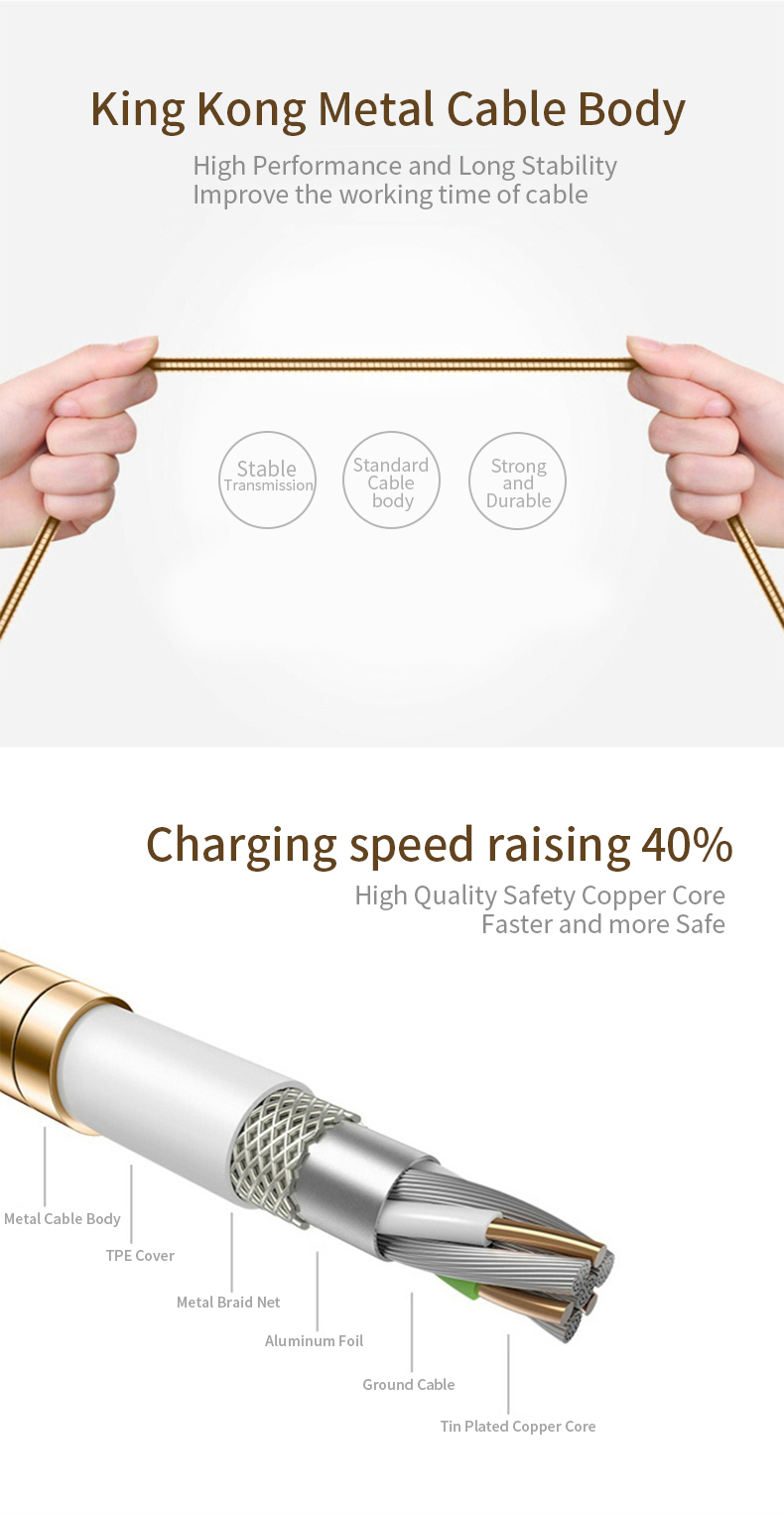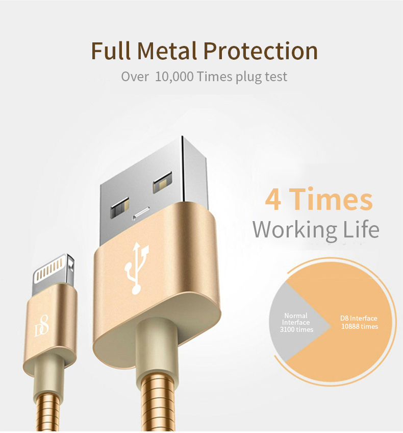 D8 Lightning USB Data Cable Metal Surface for all Iphone High Quality Fast Charging