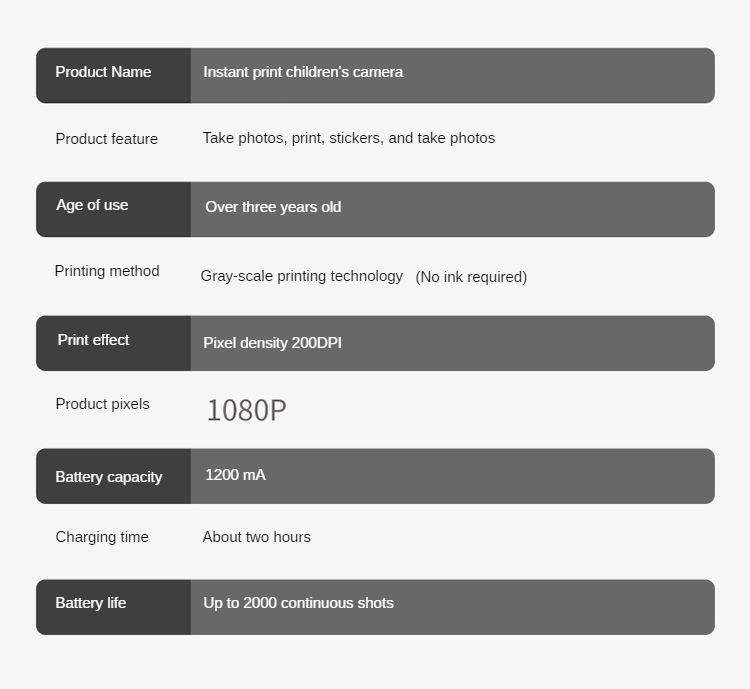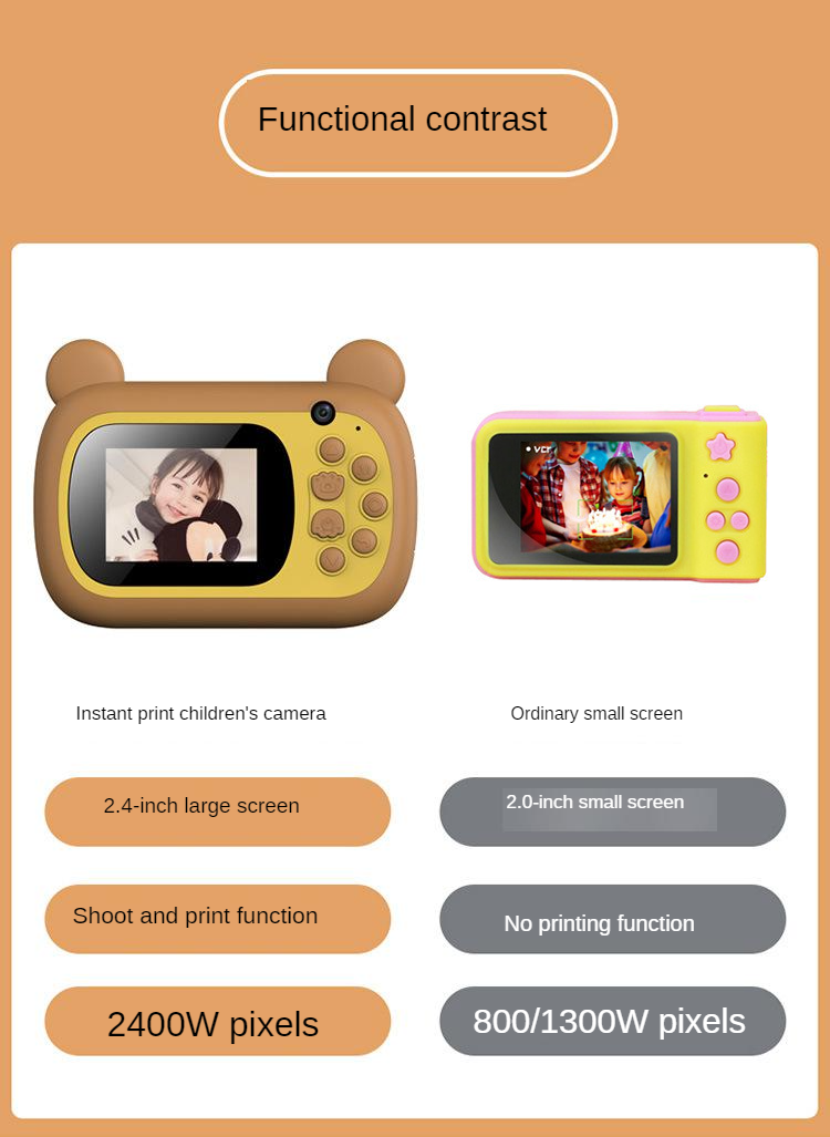 explosive children's camera Polaroid 2400w pixel dual lens photo printing cartoon digital small camera