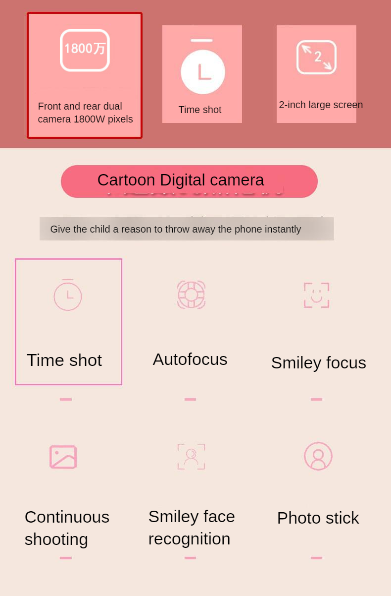 [Front and rear dual lens 1800W pixels, face smile recognition focus, auto focus]