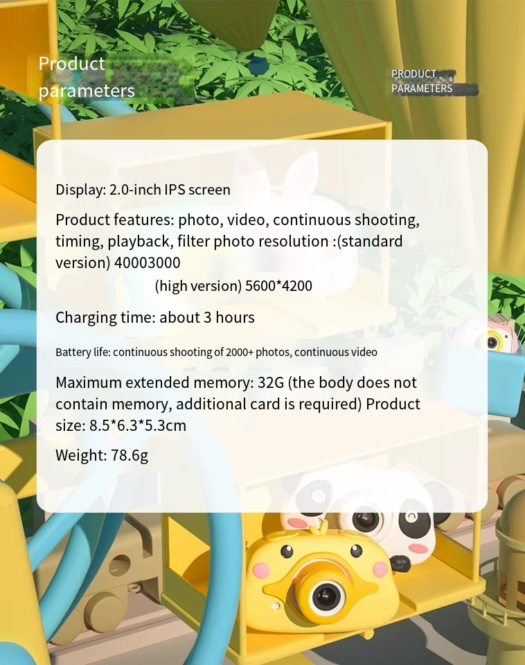 wifi children's camera mini SLR dual lens cute animal video camera digital camera toy factory